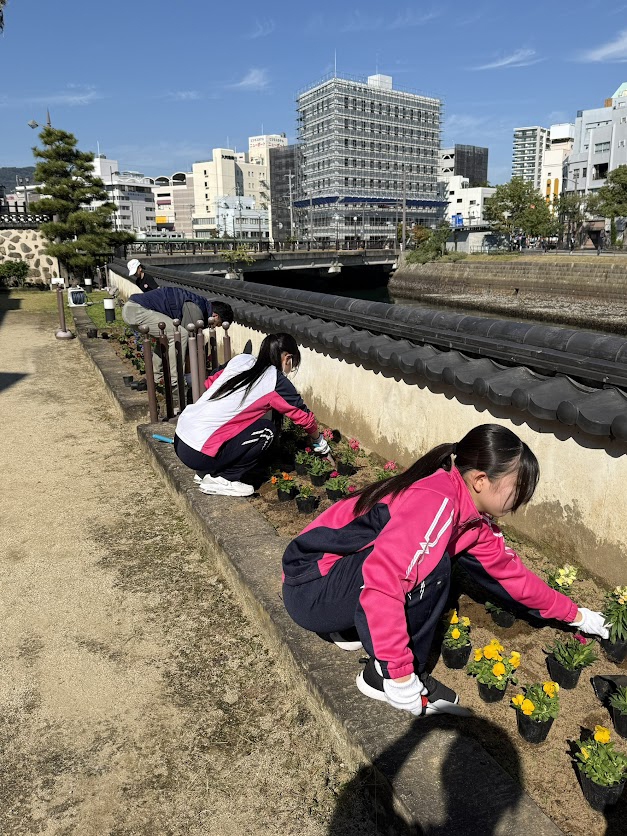 今年は出島神学校の改築工事に伴い、いつもの場所ではなく、代替の場所(川沿い花壇)に秋冬のお花を植えております。
